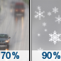 Temperature: 32°F Wind Speed: 3 to 8 mph Wind Direction: S Forecast: A slight chance of snow. Mostly cloudy, with a high near 32. Chance of precipitation is 20%. |
