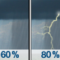Temperature: 45°F Wind Speed: 5 to 10 mph Wind Direction: SW Forecast: Showers and thunderstorms likely. Mostly cloudy, with a low around 45. Southwest wind 5 to 10 mph. Chance of precipitation is 60%. |