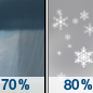 Temperature: 13°F Wind Speed: 8 to 14 mph Wind Direction: WNW Forecast: A chance of snow showers before 5am. Mostly cloudy. Low around 13, with temperatures rising to around 18 overnight. West northwest wind 8 to 14 mph. Chance of precipitation is 50%. New snow accumulation of less than one inch possible. |
