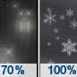 Temperature: 26°F Wind Speed: 13 to 17 mph Wind Direction: S Forecast: Rain before 4am, then a chance of snow between 4am and 5am, then a chance of rain. Cloudy. Low around 26, with temperatures rising to around 40 overnight. South wind 13 to 17 mph, with gusts as high as 30 mph. Chance of precipitation is 100%. Little or no snow accumulation expected. |