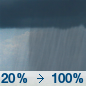 Temperature: 25°F Wind Speed: 10 to 20 mph Wind Direction: W Forecast: Rain showers before 11pm. Mostly cloudy, with a low around 25. West wind 10 to 20 mph, with gusts as high as 33 mph. Chance of precipitation is 100%. New rainfall amounts between a half and three quarters of an inch possible. |