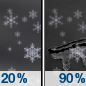 Temperature: 30°F Wind Speed: 3 mph Wind Direction: SE Forecast: A chance of snow between 11pm and 2am, then snow showers likely between 2am and 4am, then snow showers and freezing rain. Cloudy, with a low around 30. Southeast wind around 3 mph. Chance of precipitation is 90%. New snow accumulation of less than half an inch possible. Little or no ice accumulation expected. |