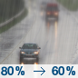 Temperature: 53°F Wind Speed: 15 to 20 mph Wind Direction: SW Forecast: Rain. Mostly cloudy, with a high near 53. Chance of precipitation is 80%. |