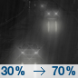 Temperature: 36°F Wind Speed: 5 to 15 mph Wind Direction: S Forecast: Rain likely after 9pm. Mostly cloudy, with a low around 36. Chance of precipitation is 70%. |