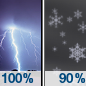 Temperature: 27°F Wind Speed: 35 to 45 mph Wind Direction: SW Forecast: A slight chance of thunderstorms and rain and snow showers likely before 4am, then rain and snow showers. Cloudy, with a low around 27. Chance of precipitation is 80%. |