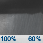 Temperature: 37°F Wind Speed: 3 to 7 mph Wind Direction: S Forecast: A chance of rain showers. Cloudy, with a low around 37. Chance of precipitation is 60%. |