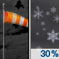 Temperature: 35°F Wind Speed: 7 to 10 mph Wind Direction: SSW Forecast: A chance of rain. Mostly cloudy, with a low around 35. Chance of precipitation is 30%. |