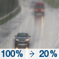 Temperature: 49°F Wind Speed: 16 mph Wind Direction: W Forecast: Rain before 1pm. Mostly sunny, with a high near 49. Chance of precipitation is 100%. |