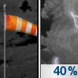 Temperature: 48°F Wind Speed: 5 to 25 mph Wind Direction: W Forecast: A chance of showers and thunderstorms between midnight and 3am, then a chance of showers and thunderstorms. Mostly cloudy. Low around 48, with temperatures rising to around 53 overnight. West wind 5 to 25 mph, with gusts as high as 35 mph. Chance of precipitation is 40%. |