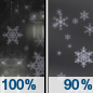 Temperature: 40°F Wind Speed: 7 to 14 mph Wind Direction: SW Forecast: Rain. Cloudy, with a low around 40. Chance of precipitation is 90%. |