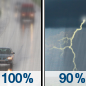 Temperature: 58°F Wind Speed: 14 to 26 mph Wind Direction: S Forecast: Rain before noon, then rain and a slight chance of thunderstorms. Cloudy, with a high near 58. South wind 14 to 26 mph, with gusts as high as 48 mph. Chance of precipitation is 100%. New rainfall amounts between three quarters and one inch possible. |