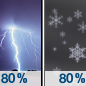 Temperature: 26°F Wind Speed: 9 to 16 mph Wind Direction: SW Forecast: Rain and a slight chance of thunderstorms before 1am, then rain and snow likely. Cloudy, with a low around 26. Chance of precipitation is 80%. |