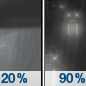 Temperature: 37°F Wind Speed: 8 mph Wind Direction: SSE Forecast: A chance of rain. Mostly cloudy, with a low around 37. |