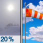 Temperature: -15°F Wind Speed: 6 to 17 mph Wind Direction: E Forecast: A slight chance of snow after midnight. Mostly cloudy, with a low around -15. East wind 6 to 17 mph. Chance of precipitation is 20%. |