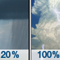 Temperature: 54°F Wind Speed: 12 to 21 mph Wind Direction: S Forecast: Rain showers likely between 7am and 4pm, then showers and thunderstorms. Mostly cloudy, with a high near 54. South wind 12 to 21 mph, with gusts as high as 37 mph. Chance of precipitation is 100%. New rainfall amounts between a quarter and half of an inch possible. |