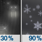 Temperature: 32°F Wind Speed: 7 mph Wind Direction: SE Forecast: A chance of rain between 11pm and midnight, then rain and snow. Cloudy, with a low around 32. Southeast wind around 7 mph. Chance of precipitation is 90%. New rainfall amounts less than a tenth of an inch possible. |
