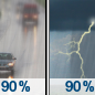 Temperature: 62°F Wind Speed: 5 to 10 mph Wind Direction: S Forecast: Rain before 3pm, then showers and thunderstorms likely. Cloudy, with a high near 62. South wind 5 to 10 mph. Chance of precipitation is 90%. New rainfall amounts between a tenth and quarter of an inch possible. |