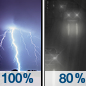 Temperature: 55°F Wind Speed: 6 to 14 mph Wind Direction: SSE Forecast: Rain before 4pm, then showers and thunderstorms likely. Mostly cloudy, with a high near 55. Chance of precipitation is 80%. |