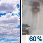 Temperature: 58°F Wind Speed: 5 to 14 mph Wind Direction: S Forecast: Rain likely after 1pm. Partly sunny, with a high near 58. Chance of precipitation is 60%. |