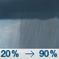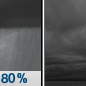 Temperature: 35°F Wind Speed: 5 to 10 mph Wind Direction: W Forecast: Rain showers before midnight. Cloudy, with a low around 35. West wind 5 to 10 mph, with gusts as high as 20 mph. Chance of precipitation is 80%. |