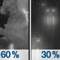 Temperature: 57°F Wind Speed: 20 mph Wind Direction: SSE Forecast: Showers and thunderstorms. Cloudy, with a low around 57. South southeast wind around 20 mph, with gusts as high as 40 mph. Chance of precipitation is 100%. New rainfall amounts between a quarter and half of an inch possible. |