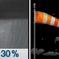 Temperature: 33°F Wind Speed: 3 to 7 mph Wind Direction: S Forecast: Partly cloudy, with a low around 33. |
