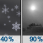 Temperature: 19°F Wind Speed: 12 mph Wind Direction: SE Forecast: A slight chance of snow. Mostly cloudy, with a high near 19. Southeast wind around 12 mph. Chance of precipitation is 20%. |
