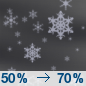 Temperature: 33°F Wind Speed: 10 mph Wind Direction: WSW Forecast: Snow showers likely. Mostly cloudy, with a low around 33. Chance of precipitation is 70%. New snow accumulation of less than half an inch possible. |