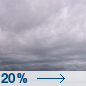 Temperature: 57°F Wind Speed: 0 to 5 mph Wind Direction: SE Forecast: Cloudy. High near 57, with temperatures falling to around 53 in the afternoon. Southeast wind 0 to 5 mph. Chance of precipitation is 20%. |