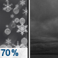 Temperature: 25°F Wind Speed: 16 to 20 mph Wind Direction: W Forecast: Snow likely. Mostly cloudy, with a high near 25. Chance of precipitation is 60%. |