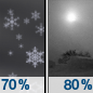 Temperature: 15°F Wind Speed: 8 to 12 mph Wind Direction: SSE Forecast: A slight chance of snow before noon. Mostly sunny, with a high near 15. South southeast wind 8 to 12 mph. Chance of precipitation is 20%. |