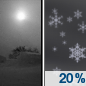 Temperature: 5°F Wind Speed: 12 mph Wind Direction: SW Forecast: A slight chance of snow. Mostly cloudy, with a low around 5. |