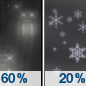 Temperature: 15°F Wind Speed: 20 to 30 mph Wind Direction: WSW Forecast: Rain likely before midnight, then a slight chance of rain and snow. Mostly cloudy, with a low around 15. West southwest wind 20 to 30 mph, with gusts as high as 40 mph. Chance of precipitation is 60%. |