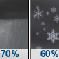 Temperature: 40°F Wind Speed: 6 to 10 mph Wind Direction: S Forecast: A chance of snow showers after 11am. Mostly sunny, with a high near 40. South wind 6 to 10 mph. Chance of precipitation is 40%. |