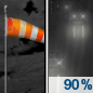 Temperature: 40°F Wind Speed: 16 to 21 mph Wind Direction: SW Forecast: Mostly cloudy. Low around 40, with temperatures rising to around 45 overnight. Southwest wind 16 to 21 mph, with gusts as high as 33 mph. |