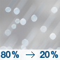 Temperature: 34°F Wind Speed: 6 mph Wind Direction: E Forecast: A chance of rain. Cloudy, with a low around 34. Chance of precipitation is 40%. |