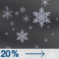 Temperature: 28°F Wind Speed: 5 to 10 mph Wind Direction: NW Forecast: A chance of snow showers. Mostly cloudy, with a low around 28. |