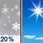 Temperature: 13°F Wind Speed: 10 to 20 mph Wind Direction: WNW Forecast: Isolated snow showers before 9am. Sunny, with a high near 13. Wind chill values as low as -17. West northwest wind 10 to 20 mph, with gusts as high as 25 mph. Chance of precipitation is 20%. |