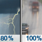 Temperature: 42°F Wind Speed: 10 to 21 mph Wind Direction: SSE Forecast: Rain before 7pm, then showers and thunderstorms between 7pm and 10pm, then rain between 10pm and 1am, then showers and thunderstorms between 1am and 4am, then rain. Cloudy. Low around 42, with temperatures rising to around 45 overnight. South southeast wind 10 to 21 mph, with gusts as high as 43 mph. Chance of precipitation is 100%. New rainfall amounts between 1 and 2 inches possible. |