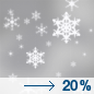 Temperature: 12°F Wind Speed: 8 mph Wind Direction: S Forecast: A chance of snow. Mostly cloudy, with a low around 12. Chance of precipitation is 40%. |