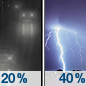 Temperature: 57°F Wind Speed: 8 to 12 mph Wind Direction: S Forecast: A chance of rain before 3am, then a chance of rain and a slight chance of thunderstorms. Cloudy, with a low around 57. South wind 8 to 12 mph. Chance of precipitation is 40%. |