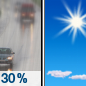 Temperature: 56°F Wind Speed: 5 to 10 mph Wind Direction: W Forecast: A chance of rain before 7am. Sunny, with a high near 56. Chance of precipitation is 30%. |