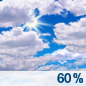 Temperature: 41°F Wind Speed: 12 mph Wind Direction: SW Forecast: Mostly cloudy, with a high near 41. Chance of precipitation is 60%. |