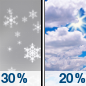 Temperature: 31°F Wind Speed: 10 to 14 mph Wind Direction: W Forecast: A chance of snow before 11am. Partly sunny, with a high near 31. Chance of precipitation is 30%. Little or no snow accumulation expected. |