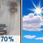 Temperature: 43°F Wind Speed: 8 to 15 mph Wind Direction: W Forecast: Rain likely before 7am. Mostly sunny, with a high near 43. Chance of precipitation is 70%. |