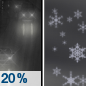 Temperature: 20°F Wind Speed: 5 to 10 mph Wind Direction: WSW Forecast: Partly cloudy, with a low around 20. |