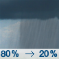 Temperature: 55°F Wind Speed: 14 to 18 mph Wind Direction: W Forecast: Rain showers before 3pm. Partly sunny, with a high near 55. Chance of precipitation is 80%. |