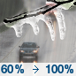 Temperature: 40°F Wind Speed: 7 to 14 mph Wind Direction: SE Forecast: Rain and freezing rain likely after 7am. Cloudy, with a high near 40. Chance of precipitation is 100%. Little or no ice accumulation expected. |