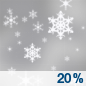 Temperature: 20°F Wind Speed: 6 mph Wind Direction: W Forecast: Partly sunny. High near 20, with temperatures falling to around 14 in the afternoon. West wind around 6 mph. |