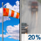 Temperature: 62°F Wind Speed: 13 to 21 mph Wind Direction: W Forecast: A slight chance of rain after 5pm. Mostly sunny, with a high near 62. |